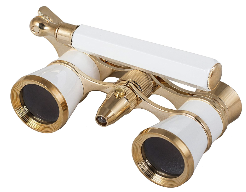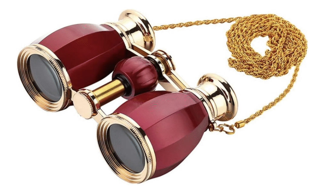 Es posiblemente la actividad donde el diseño tenga un papel más importante. Existen dos grandes tendencias: los prismáticos clásicos tipo veneciano, con acabados en latón, esmalte o nácar, y los modelos modernos plegables, discretos y minimalistas. Algunos modelos incluyen mango lateral (lorgnette) o una cadena fina para colgarlos elegantemente del cuello. El estilo elegido dependerá únicamente de vuestro gusto, pero no es algo que afecte a su funcionalidad.